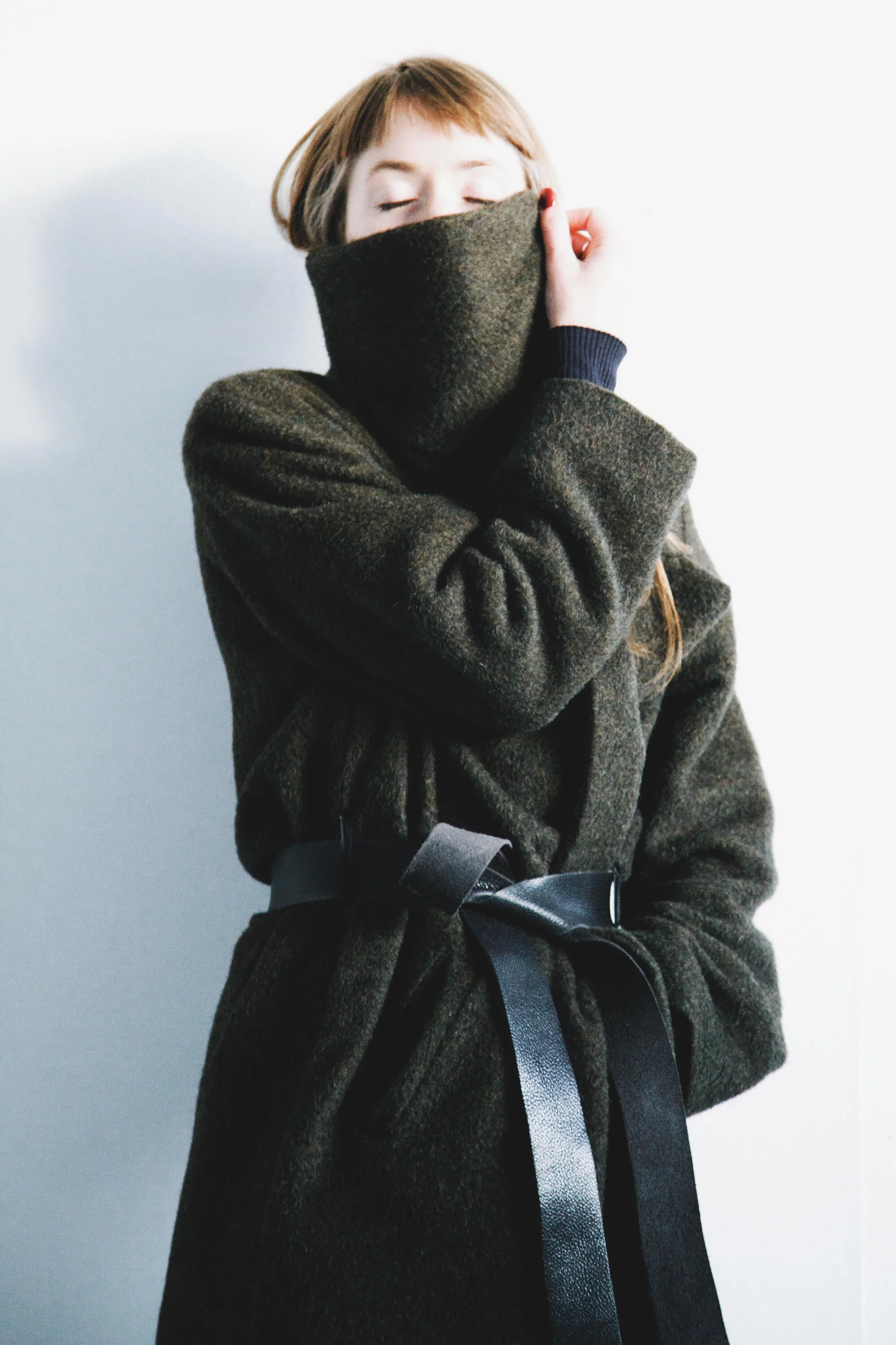 This coat is made of 45% alpaca wool, 55% virgin wool and has a 100% viscose lining. It is especially important to me to use only biodegradable fabrics in my work. I like the thought that it is not this coat accompanying me, but that I get to be a chapter in a greater circle of life. VIEW THIS DESIGN